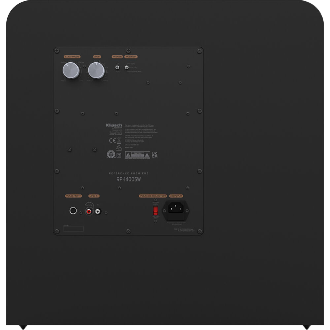 Maximize the bass response of your home theater by adding the Reference Premiere RP-1400SW 14″ 1000W Subwoofer from Klipsch. It maximizes the low-end sound with a balanced construction that efficiently combines a 14″ spun copper Cerametallic woofer, high-efficiency Class-D amplifier, and solid MDF cabinet. The result is 500W RMS (1000W peak) of rumbling power.